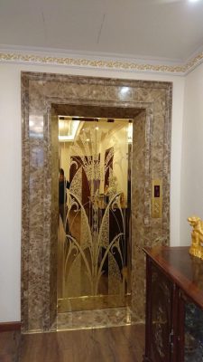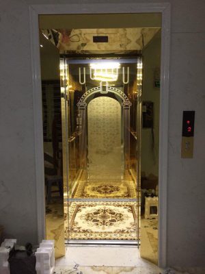 THANG MÁY INOX GƯƠNG VÀNG HOA VĂN: KHẲNG ĐỊNH ĐẲNG CẤP