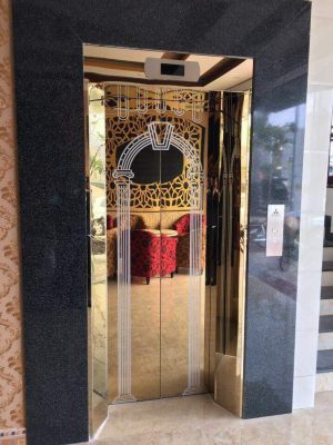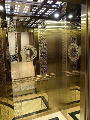 Với sự phát triển của xã hội, yêu cầu về thẩm mỹ cũng ngày càng cao hơn khiến cho những chiếc thang máy được làm bằng inox tấm gương vàng khắc thêm hoa văn họa tiết ra đời, thu hút sự chú ý và yêu thích của các khách hàng. Inox gương vàng là inox bình thường được mạ màu vàng gương sáng bóng dùng để chế tác đồ nội thất, ngoại thất. Loại inox này được đánh giá cao nhờ tính thẩm mỹ, độ bền đẹp và có khả năng tạo ra nhiều hình dáng chi tiết phù hợp với nhu cầu sử dụng của từng công trình.